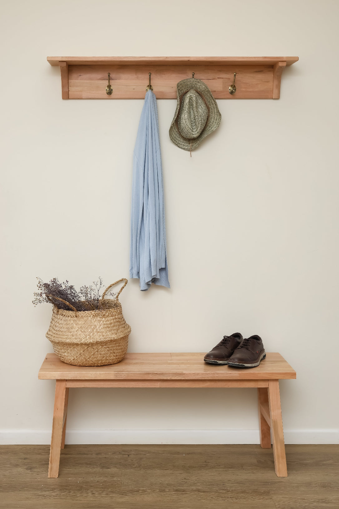 Nuestra banqueta para entrada junto al Perchero Madera Dorado, es el complemento perfecto para dar la bienvenida a tu hogar con estilo y funcionalidad. Fabricada en madera de lenga y con un diseño simple y cálido, ofrece el equilibrio ideal entre belleza natural y practicidad cotidiana .