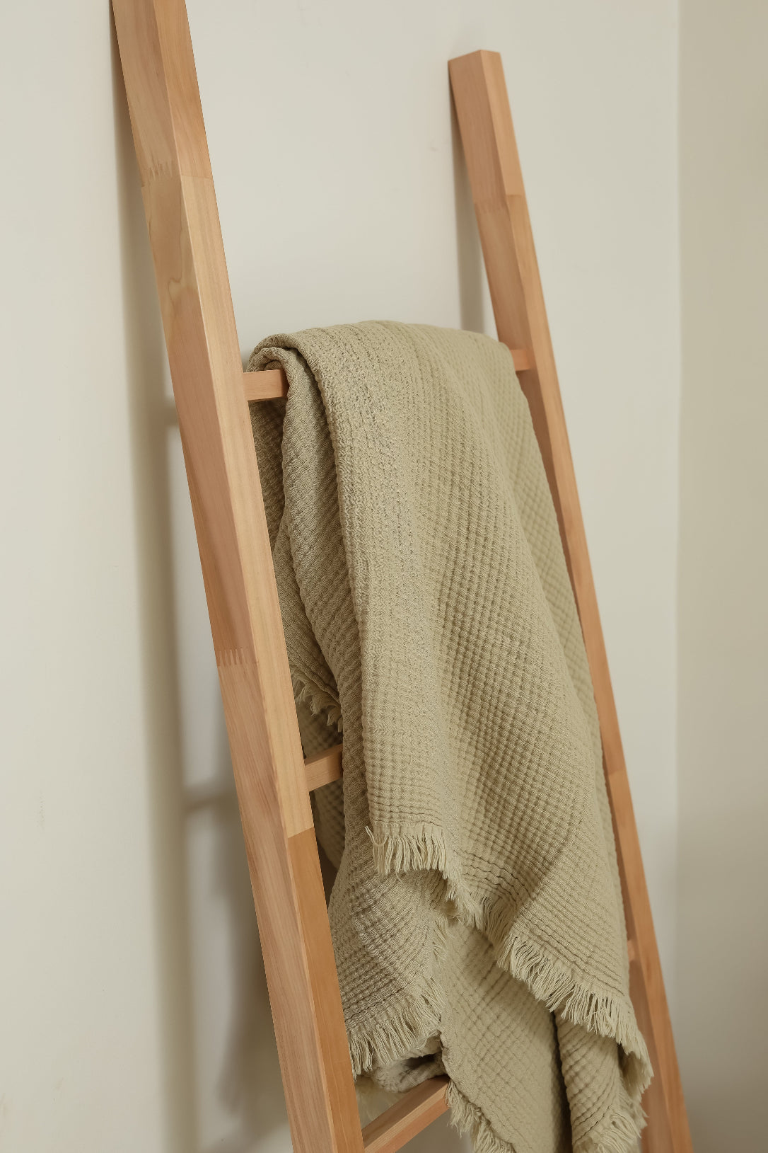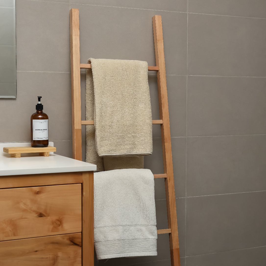Organiza y decora tus espacios con estilo. Nuestra escalera porta mantas de madera de lenga es una pieza versátil que combina diseño minimalista y calidez natural. Perfecta para dormitorios, salones o baños, permite colgar mantas, toallas o ropa de manera práctica y elegante.